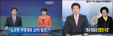 YTN은 <노무현 차명계좌 20억 발견>이라는 자막을 통해 진짜 노무현 대통령의 차명계좌가 존재했고, 여기에 거액의 비자금이 있다는 식으로 뉴스를 내보냈습니다.