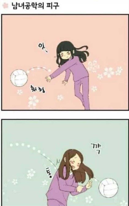 남녀공학과 여고의 피구차이
