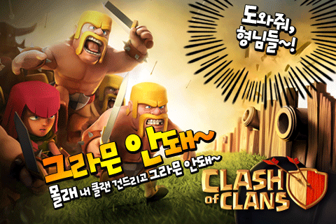 일단 클래시 오브 클랜이란 게임 ~!!!! 머 수호지랑 비슷한게임 인데