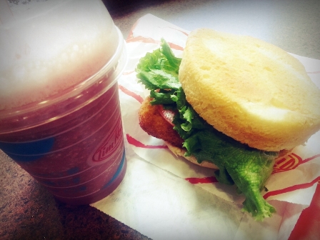 첫번째 사진은 아이스 스트로베리 스무디랑 크리스피 치킨버거입니다.
