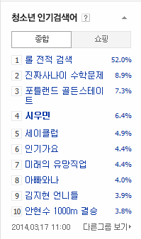 민석이 청소년 인기검색어에 출석!