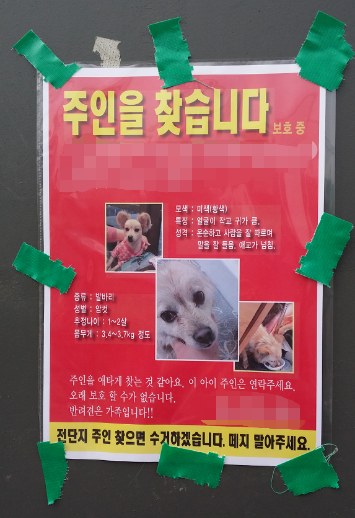 강아지가 하루 빨리 주인의 품으로