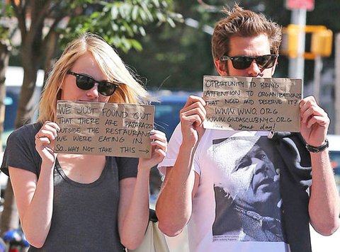는 앤드류 가필드와 엠마 스톤 커플....
