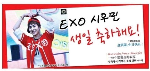 웅녀들~시우민 생일투어를 위해 생일 광고 정리했어+_+.