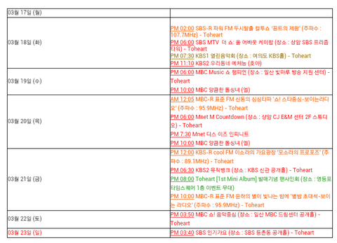 이번주 인피니트 스케줄