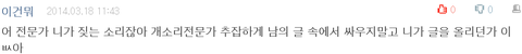 내 글과 내 댓글마다 쫓아다니면서 혼자 줄기차게 저러고 있다.