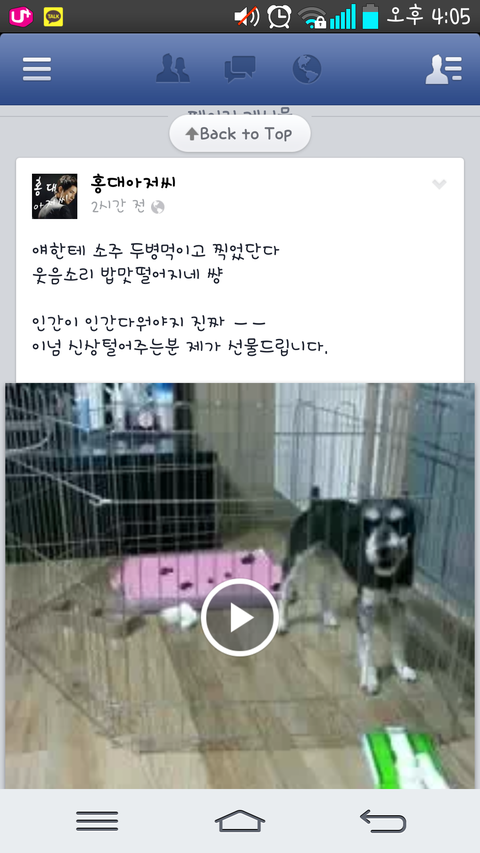 페이스북에 자신의 강아지에게 치사량의 소주를먹인후 강아지가 몸을지탱하지못하고 힘겨워하는 동영상을 게시한사람이있습니다.