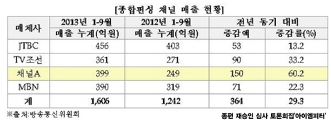 2013년 지상파 광고의 매출이 2012년 대비 662억 원 감소했지만, 종편은 무려 1,606억 원의 매출을 올렸습니다. 이는 전년 대비 29.3%가 증가한 매출입니다.