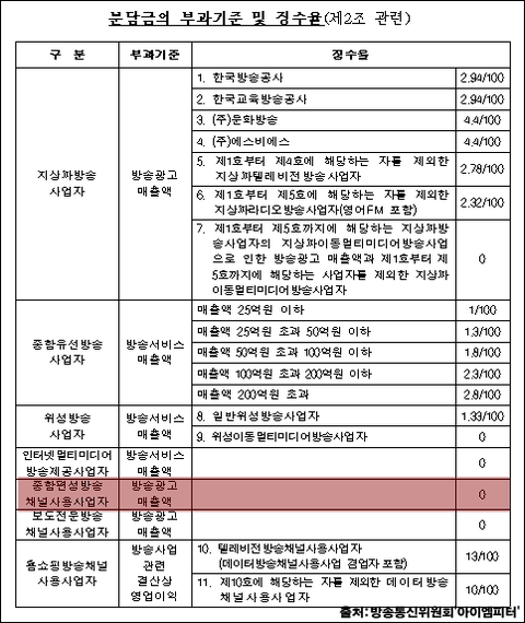 방송통신발전기본법에 따라 방송사들은 방송광고 매출액을 기준으로 징수율에 따라 '방송발전기금'을 납부해야 합니다. 이렇게 거둬진 방송발전기금은 자막방송이나 콘덴츠 개발 등 공익적인 방송 프로그램 제작에 사용됩니다.