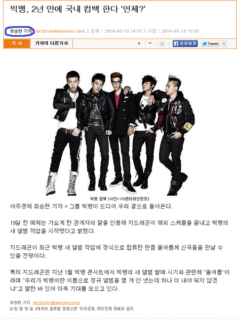 저 기자이름이 최승현임 ㅋㅋㅋㅋ