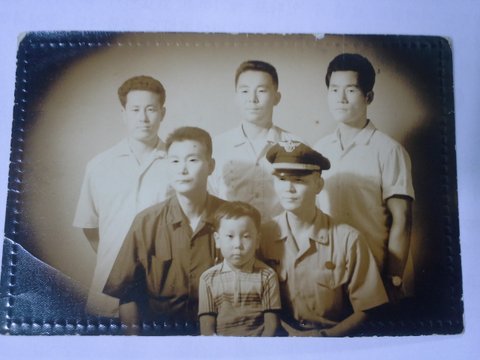 가족사진은 어린아이옆에 검은색반팔셔츠입은 분입니다.
