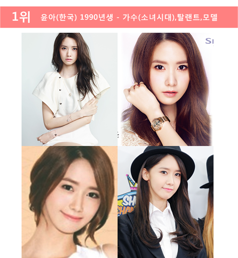 소녀시대 윤아가 지난번에 이어서 또다시 1위를 차지했고