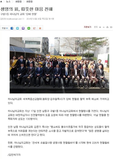 인천 남동 하나님의교회 김문기 목사는 "평소에도 불우이웃돕기에 적극 동참하는 하나님의교회 성도들이 혈액 부족으로 어려움을 겪는다는 안타까운 소식을 듣고 자발적으로 참여했다"며 "많은 생명을 살리는데 귀하게 쓰여졌으면 한다"고 했다.