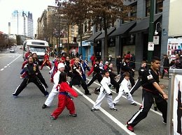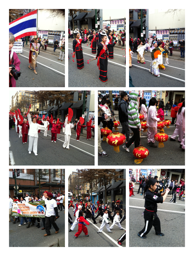 밴쿠버 내에 있는 각종 이민자들의 society 에서 큰 배너를 들고 다같이 행군을 하기도 하기도 하고 부채춤을 추거나 무술을 보여주기도 했어요~