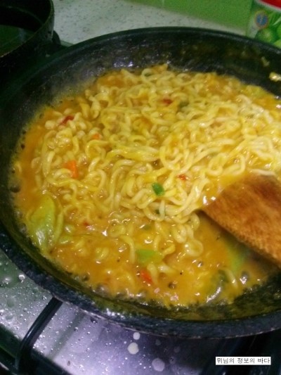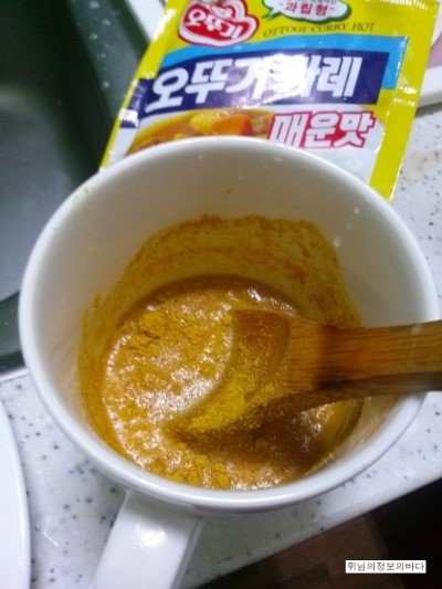 4. 풀은카레를 약간의물과 함께 후라이펜에 녹인다(살살 저어주세용)