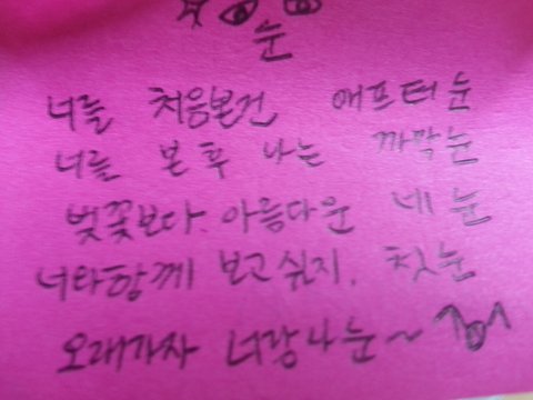 눈화장을 이쁘게한 친구에게 보내는 나의 사랑의 러브레퉈~