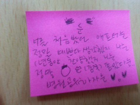 수업을 듣다가 정말ㄹ루루루지루했던 나는 친구포스트잇떼와서 쪽지를 쓰기 시작함.