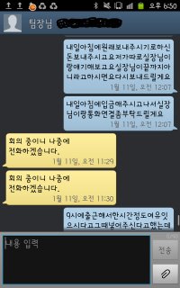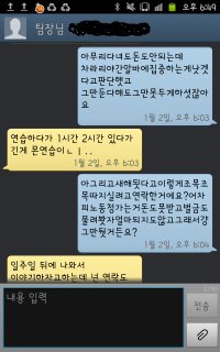 "안돼. 너 내일 1시까지 무조건 사무실나와. 1시까지 안나오면 니 페이로 우리 회식한다."