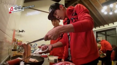 2. 멤버들과 간 MT에서 먼저 나서서 익숙한 솜씨로 고기 굽고, 된장찌개 끓이는 찬열이