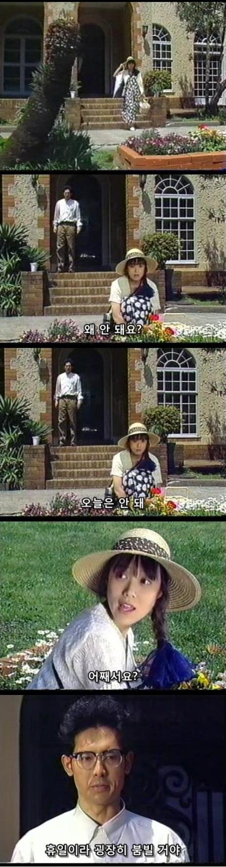 여주는 시무룩한 표정으로 왜안되냐 묻지만, 휴일이라 굉장히 붐빌꺼라는 되도않는 핑계를 대는 남주.
