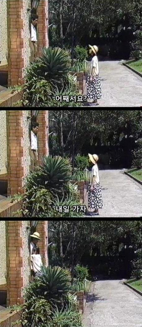 그리고 다음날 마당을 거니는 여주의 뒷모습이 쓸쓸해보임.