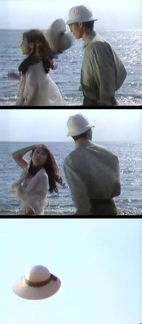 그때 갑자기 불어온 바람에 여주의 모자가 날아가버리고, 남주는 모자를 줍기위해 쫓아감.