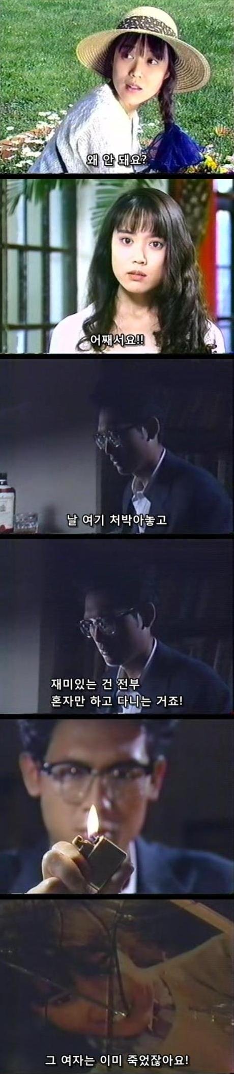 죽은 여주의 시신을 보고 깊은 실의에 빠진 남주ㅠ 여주의 이름이 유리에인듯. 그리고 여주의 사진을 보며 뭔가 결심을 한듯한 남주.