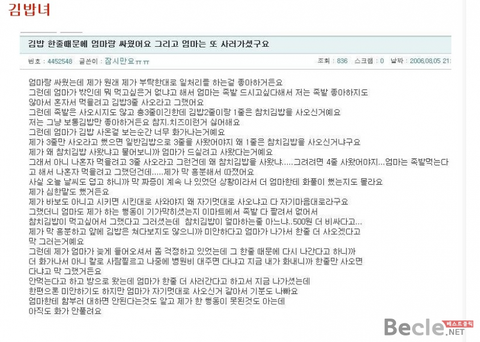 자작이면 좋겠다 시바 저런년은 디져버려야해 지혼자 3줄을 그렇게 쳐먹고싶었나 돼지같은년 어머니가 비싼것도 아니고 김밥한줄드시려고 사온건데 한줄못쳐먹는다고 지랄이야 갈비뼈 다부러뜨리고싶다 ㅅㅂ