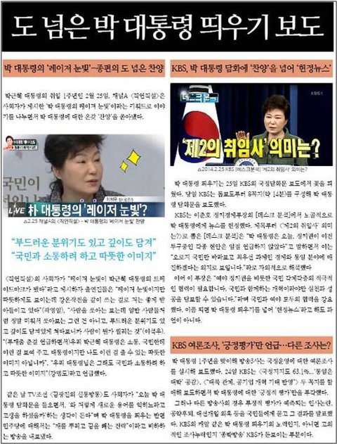 악의적으로 야당을 비난하고 대통령에 대해서는 찬양 일색의 보도를 일삼는 건 종편뿐만 아니다. 최근 야권이 통합신당을 만들자 지상파들도 편파보도에 열을 올리고 있다. 정부여당에게 불리한 뉴스는 메인에서 찾아보기 어렵게 됐다.