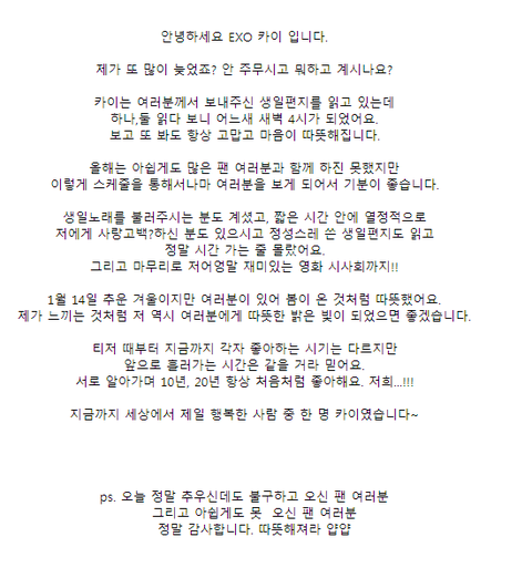 시작은 세훈이 공홈글이긴했지만 아무튼! 카이야 사랑해♥