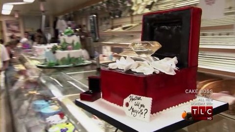 반지케이스와 똑같이 생긴 케잌을 주문하여 진열해 놓고