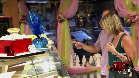 남자는 이것 저것 다른 케익을 가르키다 여자에게 물어봐요.