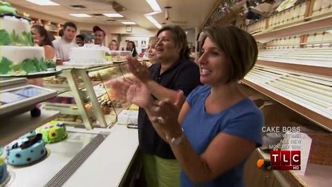빵집에 있던 모든 사람들이 나와 축하를 해 줍니다.