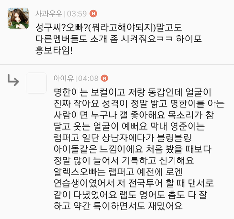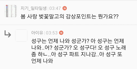 (성구는 이번에 데뷔하는 그룹 하이포의 멤버/리더로 아이유랑 예전부터 친한사이 ㅋㅋㅋㅋ)같은 소속사도 아닌데 의리로 도와줌.