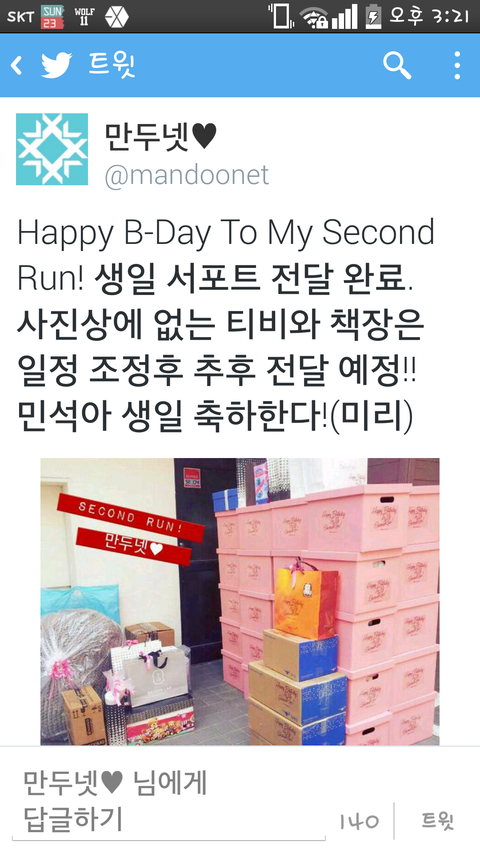 우리 민석이 기뻐할 모습이 눈에 선하네♡ 해피 버스데이♡
