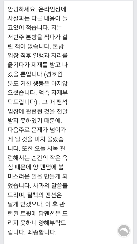 사과문 쓸꺼면 제대로 쓰지ㅉㅉ 변명글이네ㅋㅋ작은 욕심 지랄