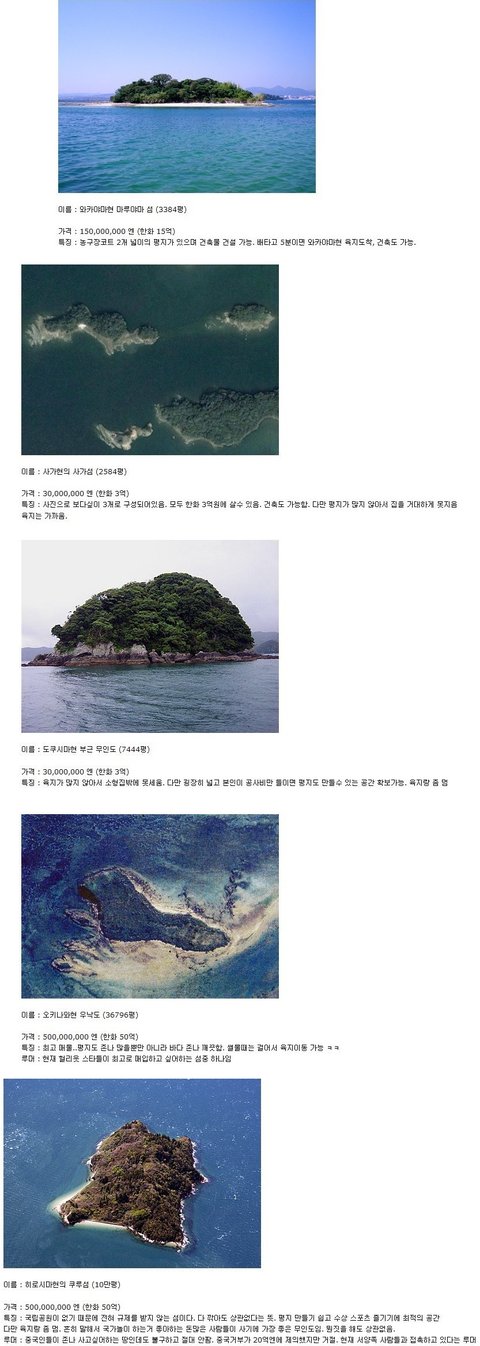 열도에서 개인적으로 소유할 수 있는 섬들...