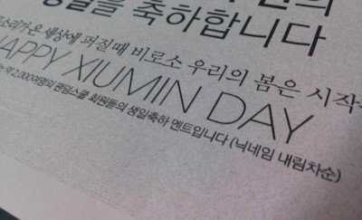 팬덤스쿨에서 준비하고 있는 시우민 광고의 일간지 생일 축하 광고~