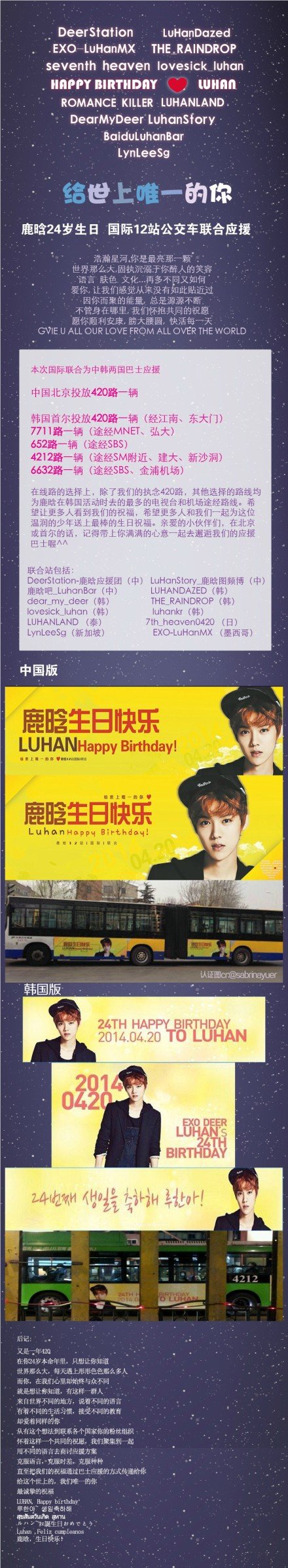 p.s. 이거 여러 나라 팬들이 같이 생축해자는 의미로 6개 나라의 루한 홈에서 연합해서 한거야 :