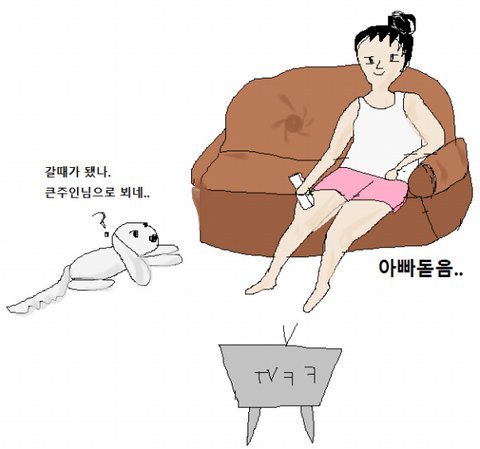 곧 아빠임. 마치 아빠가 퇴근 후 피곤한 몸을 소파에 뉘이시고 티브이 시청 중이신것 같음.