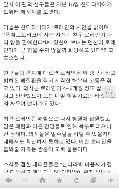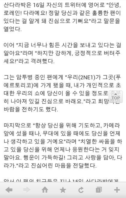 암투병인 팬에게 트위터로 장문의 편지를 보내줌...