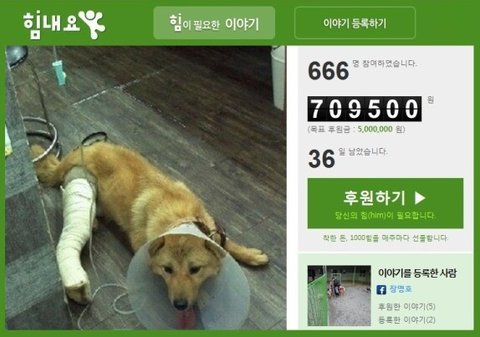 저희가 이번에 다치고 아픈 아이들을 위한 병원비와 운영비 마련을 위해