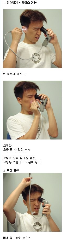 그럼저걸 귀에도꼽고 콧구멍에도꼽고 머리에도꼽고;;저러다 입에도 넣을듯..