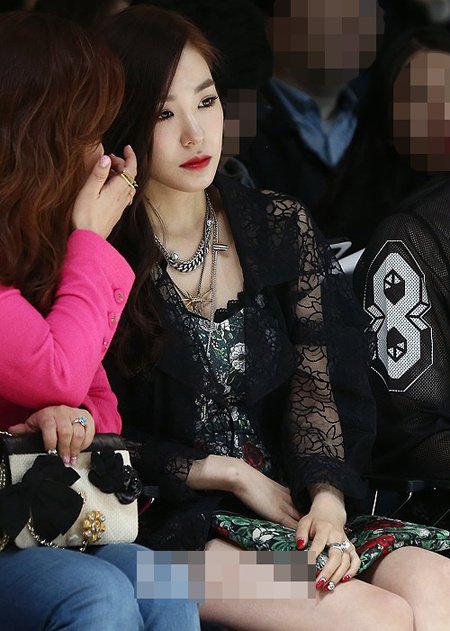 샤워 가운 느낌 나는 까만 시스루 자켓에 빨간색으로 곳곳에 포인트를 준 티파니