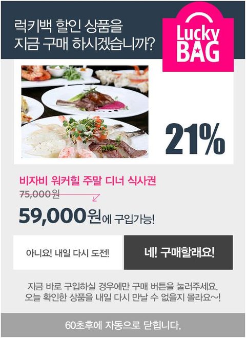 럭키백과 마찬가지로 기간 내에 1가지 상품만 구입할 수 있는 점이 좀 아쉽긴 하지만
