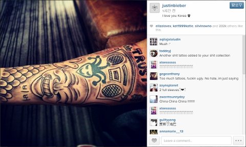 "두 유 노 하회탈" 팔에 하회탈 문신 새긴 저스틴 비버