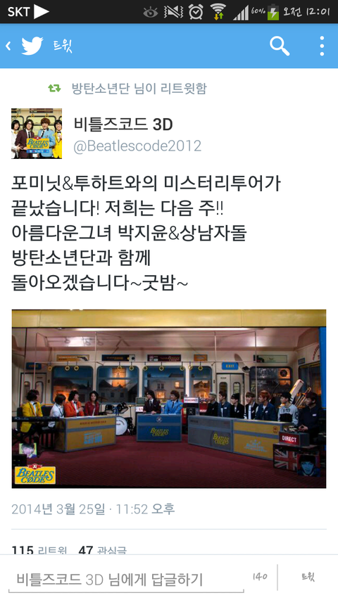 우오와비틀즈코드에드디어방탄이나온돼요:)