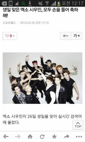 시우민 일위와 동시에 기사까지 올라왔다능.