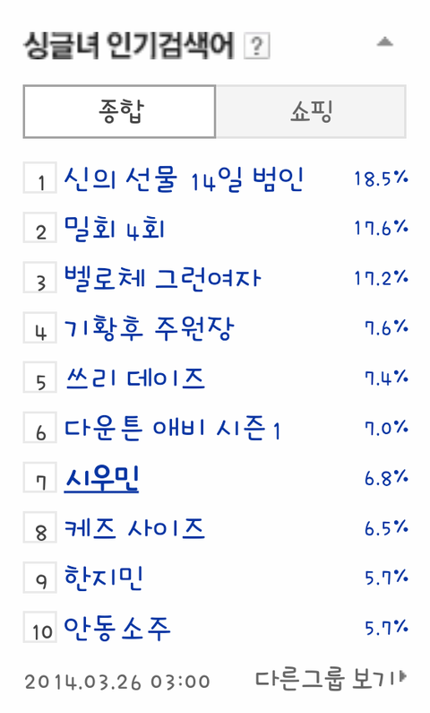 140326 3시 싱글녀 인기검색어