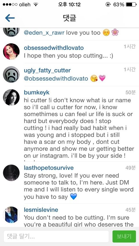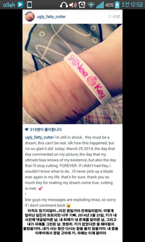 은 샤이니 키.. 자해하는 해외팬에게 댓글달아줌..ㅠ